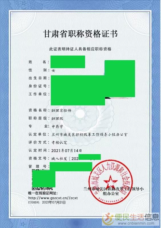 甘肃省人社厅,档案齐全,国家职称联网查询,初级(助理级)中级工程师职称多省可评审